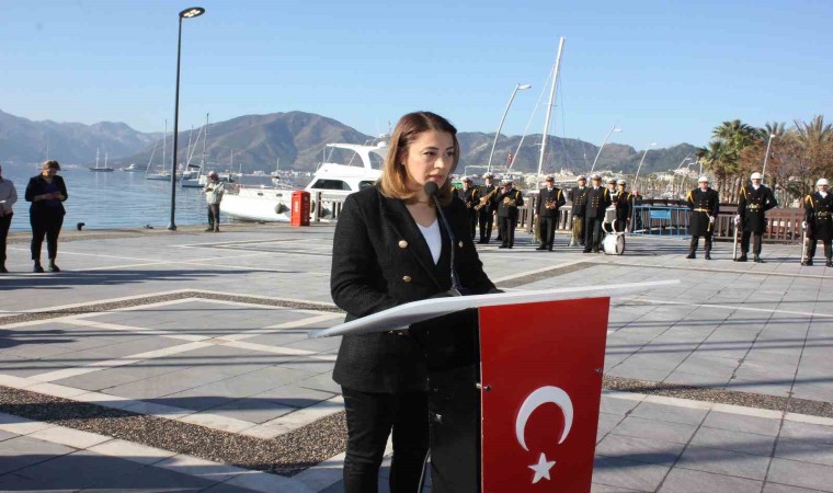 Günün anlam ve önemine ilişkin konuşmayı özel bir okulun müdür yardımcısı Burcu Arıcı, “Bugün Marmaris ve Marmarisliler için çok özel ve anlamlı bir gün. Cumhuriyetimizin kurucusu eşsiz önder Gazi Mustafa Kemal Atatürk’ün Marmaris’e gelerek Marmaris’i onurlandırmasının 89’uncu Yıldönümü. Türkiye Cumhuriyetinin kurucusu, vatanını ve milletini derinden seven kahraman bir asker, ileri görüşlü bir devlet adamı ve yenilikçi bir lider olan Gazi Mustafa Kemal Atatürk Milli Mücadeleyi kazanıp Türkiye Cumhuriyetini kurduktan sonra halkın durumunu yerinde görmek ve yeniliklerin etkilerini değerlendirmek amacıyla yurt gezilerine çıkmıştır. Atatürk, karayolu ile ulaşılması o yıllarda mümkün olmayan Fethiye ve Marmaris’e deniz yolu ile uğrayabilmiş ve her iki beldenin yöneticileri, fırka sorumluları ve halk ile geniş görüşmeler gerçekleştirmiştir. Atatürk’ün, deniz seyahatleri detaylı olarak incelendiğinde Marmaris’ten bir kez direkt geçtiği iki kez de Körfez’e girerek Marmaris’i onurlandırdığı görülmektedir. Mustafa Kemal Atatürk, Akdeniz ve Ege kıyılarını ziyarete Gül-Cemal adlı vapur ile Antalya’dan başlamıştır. Her iki gelişinde de karaya çıkamamış, o günün Kaymakamı Ali Rıza Göztepe Başkanlığındaki heyet tarafından vapurda ziyaret edilmiştir. Heyete Marmaris Heyeti Marmaris Atatürk İlkokulundan bir öğretmen ve bir grup öğrenci de eşlik etmiştir. Kaymakam, Belediye Başkanı ve dönemin ileri gelenleri vapura çıkmış bir salona alınmışlardır. Biraz sonra Mustafa Kemal Atatürk gelmiş, herkesin elini sıkarak selamlamış ve kısaca görüşmüşlerdir. Atatürk, bu kısa görüşmeden sonra sizinle daha uzun süre beraber olmak isterdim fakat şu an buna imkan yok diyerek heyetin yanından ayrılmıştır” sözlerini okudu.