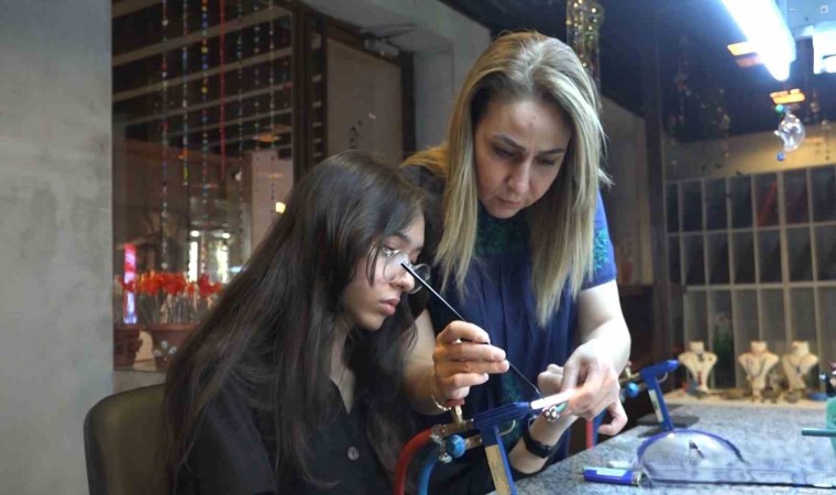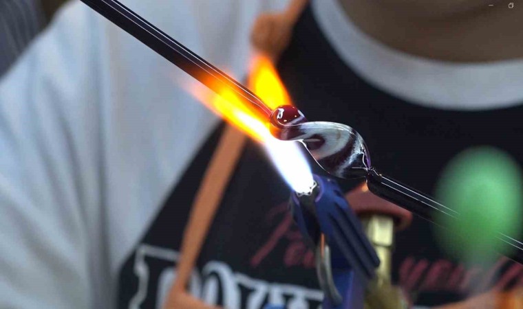 Atölyedeki kursa katılan ve hünerlerini sergileyen genç yetenekler, atık cam şişeleri ve cam çubukları bin derece sıcaklıkta eriterek küçük oyuncaklar, boncuk, kolye, bileklik, yüzük, küpe, saat, anahtarlık gibi çeşitli sanat eserleri yapıyor.