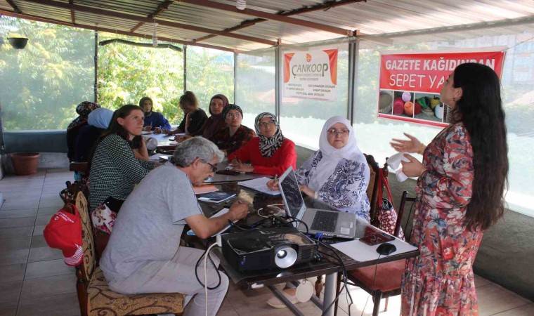 Atık kağıttan yapılan çubuklarla sepet ürettiklerini, bu sayede kadınlara gelir kaynağı sağlayacak alan açtıklarını ifade eden eğitmen Demet Özkan, “Sepet üretme işi Fatma Hanım ve Rıza Bey ile tanışmamız akabinde de derneğe üye olmamla başladı. Benim böyle bir becerim vardı. Öğreticiliğini almıştım. Ondan sonra böyle bir yeteneğimiz olunca neden bunu bir kursa dönüştürmeyelim. Kadınlarımıza kooperatifimizde bir gelir kaynağı sağlayalım diye fikir çıktı. Milli Eğitim Müdürlüğü’ne başvurduk. Onlar da kabul ettiler. 12 tane kursiyerimiz ile birlikte 1 aydır hızlı bir ilerleme sağladık. Atık gazete kağıtlarından yaptığımız çubuklarla evlerinde kullanabilecekleri sepetler, ufak malzemeler yapıyoruz. Bunları daha sonra satıp, kendilerine gelir kaynağı sağlayacak bir alan açıyoruz” şeklinde konuştu.