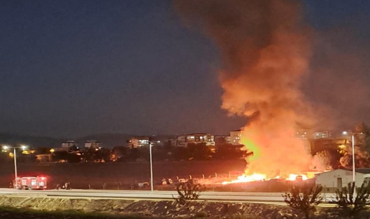 Adıyaman’da, bir işletmenin bahçesinde bulunan atık malzemelerin cayır cayır yanması korkuttu.