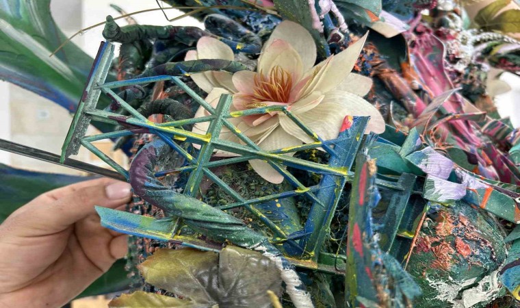 Metruk binaların üstlerine atılan atıkları da toplayarak onlardan faydalandıklarını belirten disiplinler arası sanatçı ve eğitimci Fırat Karapınar, heykelin içeriğinde Karabağlar ve Gaziemir çevresindeki mobilya atıklarının kullanıldığını söyledi. Atık malzemeleri toplama aşamasını ekip halinde gerçekleştirdiklerini aktaran Karapınar, şunları kaydetti: