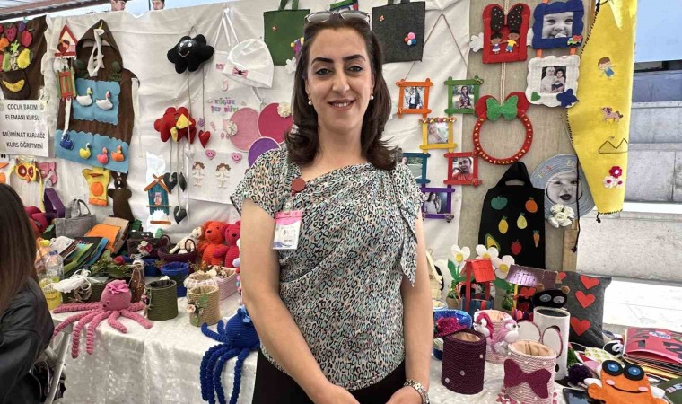 Atıklardan ürün yaptıklarını belirten Çocuk Gelişimi ve Bakım Kurs Hocası olan Demet Onat, “Bizde Halk Eğitim Müdürümüzün Bünyesinde açtığımız kursta ve tamamen çocukların el emeğiyle ve Atıklardan yaptıkları ürünleri sergiliyoruz. Güzel gidiyor yoğun ilgi var bize bu imkanı sağlayan herkese teşekkür ediyoruz” dedi.