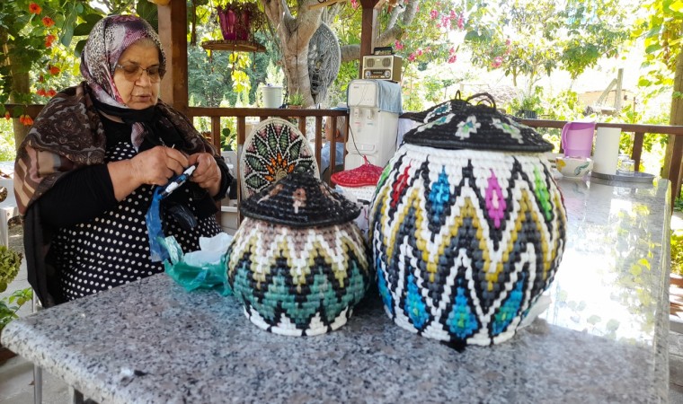 Sinop’ta yaşayan Ayşe Öztürk, atık poşetleri değerlendiriyor. 76 yaşındaki Ayşe Öztürk, alışveriş poşetlerini çöpe atmıyor, onları ilmek ilmek örerek sepet, nihale, tablo, çamaşırlık gibi kullanışlı eşyalara dönüştürüyor.