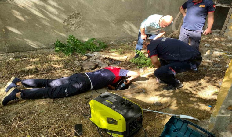 Amasya’nın Merzifon ilçesinde yer altından geçen atık su borusuna sıkışarak mahsur kalan iki yavru köpek itfaiyeciler tarafından kurtarıldı.