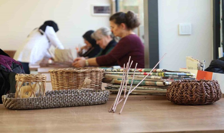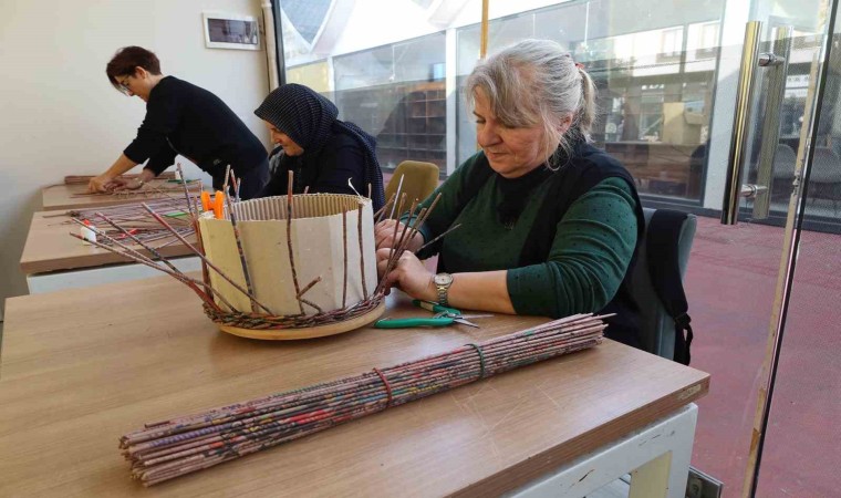 Atölye eğitmeni Meral Erdem, “Atık gazete ve kartonları yeniden işleyerek saksı, sepet, supla gibi evde kullanılabilecek pek çok ürün üretiyoruz. Atölyemize katılan öğrenciler hem bütçe dostu olduğu hem de sosyalleşme fırsatı sunduğu için bu çalışmalardan keyifle faydalanıyorlar” dedi.