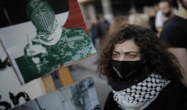 Direnişin yıl dönümü kapsamında gerçekleştirilen gösteride Filistin bayrağı da taşınırken, Gazze’ye destek sloganları atıldı. Gösteriye Yunanistan’da yaşayan Filistinliler de katıldı.
