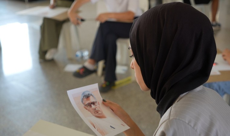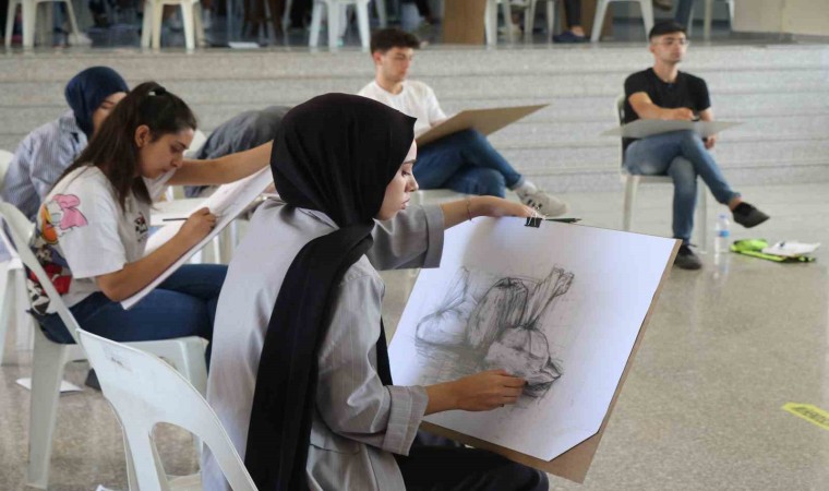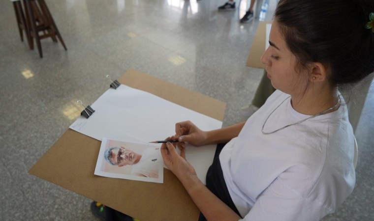 Sınavın ilk oturumunda masaya konulan objeleri çizen öğrenci adayları sınavın ikinci oturumunda ise Yusuf Dikeç’in portresinin yarısını mekanik olarak çizdi.