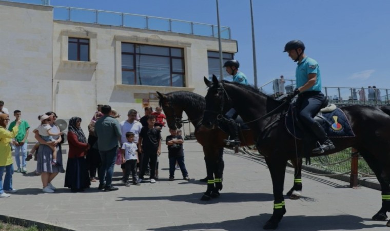 Halkın huzur ve güvenliğinin sağlanması amacıyla devriye gezen atlı birlik, çocuklardan ve vatandaşlardan yoğun ilgi gördü. Atlı birliği gören çocuklar ve aileleri, hatıra fotoğrafı çektirdi.