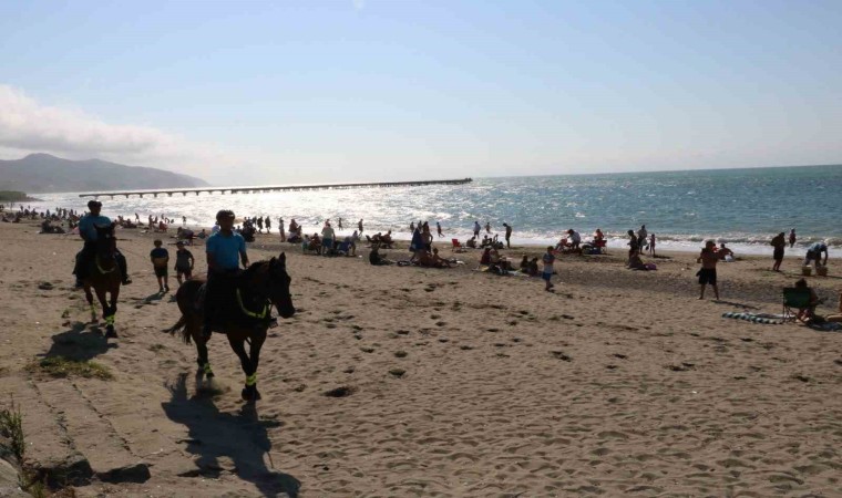 Zonguldak’ın tatil beldesi Filyos’ta huzur ve güveni sağlamak için göreve başlayan atlı jandarma timi, vatandaşların yoğun ilgisini görüyor.