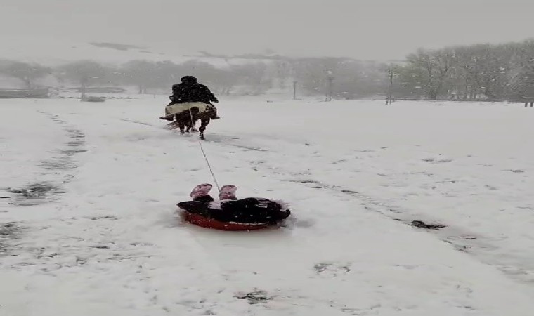 Atlı kafede çocuklar ve yetişkinler için atlı geziler düzenlenirken, hafta sonunda etkili olan kar yağışı karı eğlence dönüştüren çocuklar renkli görüntü oluşturdu. Halatla bağladıkları leğen üzerinde karlı zeminde kayan çocuklar gönüllerince eğlendi. At üzerinden bağladıkları leğenler ile çocukları çeken at binicileri karı eğlenceye dönüştürdüler.