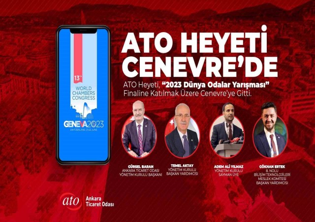 Ankara Ticaret Odası (ATO) Yönetim Kurulu Başkanı Gürsel Baran önderliğindeki ATO Heyeti, Dünya Odalar Federasyonu'nun (WCF) düzenlediği "2023 Dünya Odalar Yarışması" finaline katılmak üzere İsviçre'nin Cenevre şehrine gitti. ATO'nun "ATONET Üye Hizmet Platformu" projesi, bu yarışmanın "En İyi Oda Sistemi İnovasyon Projesi" kategorisinde finale kalmıştı.