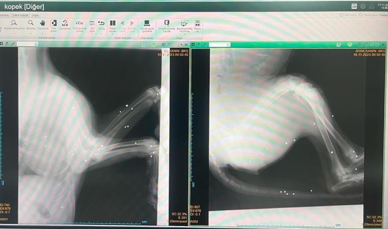 Edinilen bilgilere göre, Adıyaman merkez Ataköy Köyü civarında yerde kanlar içerisinde yatan bir köpeği fark eden vatandaşlar yaralı köpeği araçlarıyla Adıyaman Belediyesi Veteriner İşleri Müdürlüğüne getirdi. Burada tedavi altına alınan köpeğin çekilen röntgen filmlerinde 22 adet saçma tespit edildi.