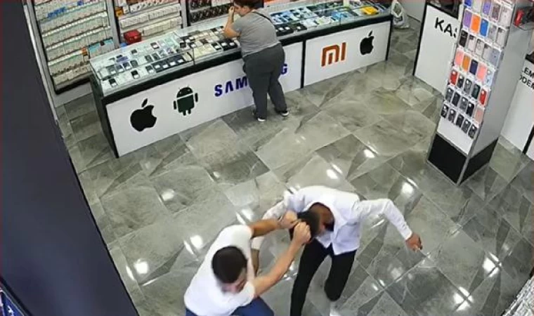 Şüpheli, beğendiği telefonu cebine atmaya çalışırken, iş yeri sahibi durumu fark etti. Telefonun çalındığını anlayan Şakar, hırsızı yakalamak için hemen harekete geçti. Önce telefonu geri istedi, ancak şüpheliye inanmadı. Ardından hırsızı yumruklayarak yere düşürdü.