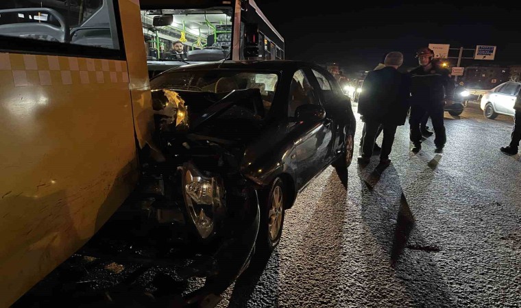 Avcılar’da kontrolden çıkan otomobil, park halindeki özel halk otobüslerine çarptı. Kazada 2 kişi yaralandı.