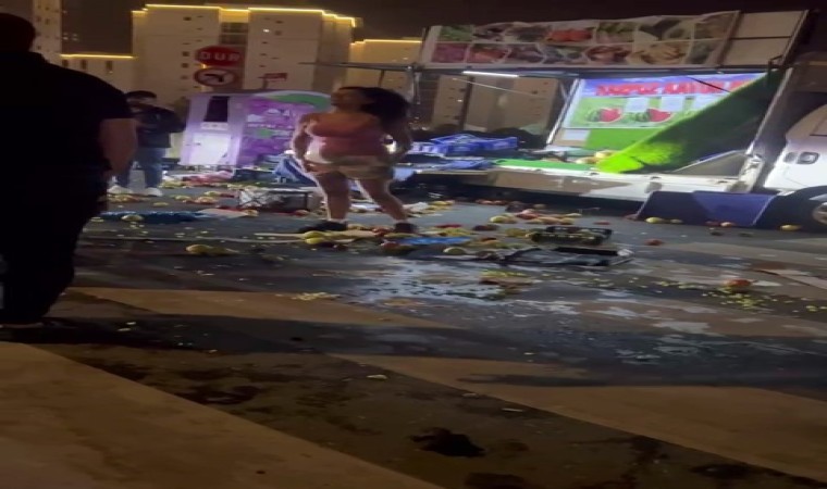 Avcılar’da bir kadın para konusunda anlaşamadığı manavın önce kafasına vurdu, ardından meyvelerini yerlere dağıttı. Olay sonrası kadın gözaltına alınırken, yaşanan anlar cep telefonu kamerasına anbean yansıdı.