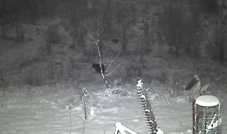 Pazaryeri ilçesinin yüksek kesimlerinde kar yağışı etkisini gösterirken yiyecek arayan domuz sürüsü avcılardan kaçmaya çalışıp ayılara yem oluyordu. Bozcaarmut köyüne 2,5 kilometre uzaklıkta Kırıklık mevkiinde bahçesindeki kameralardan kar yağışını seyretmek isteyen emekli öğretmen Ali Özer bahçesinde avcılardan kaçan domuz sürüsünü gördü. Domuzlar sürü halinde bahçesinden geçerken bu sefer aç ayılar domuz sürüsüne saldırdı. Yaşananlar anbean güvenlik kameralarına yansıdı.