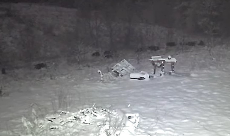Bilecik’te avcılardan kaçan domuz sürüsü ayıların saldırısıyla karşılaştı bu anlar anbean güvenlik kameralarına yansıdı.