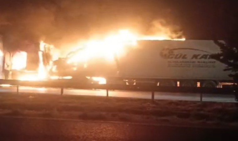 Adana’da otoyolda seyir halindeki avokado yüklü tır alev alev yandı. Sürücüsü kendini son anda kurtarırken, araç tamamen yanarak kullanılamaz hale geldi.
