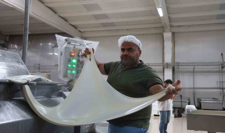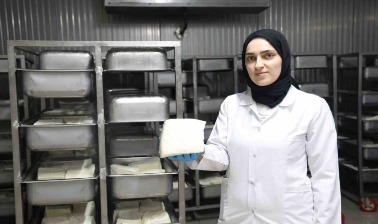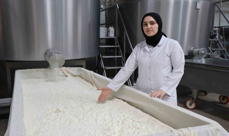 Her peynirle künefe yapılmayacağını dile getiren Elifnur Güneş, "Burada künefelik peynir üretimi yapılıyor. Her peynirle künefe yapılmaz. Daha lezzetli olması için ph ve asitlik oranının uygun olması gerekiyor. Burada yaklaşık günlük 1 ton künefe peyniri üretimi yapıyoruz. Künefelik peynirin 4 derecelik dolapta 10 günlük raf ömrü var. Peynirin mayalanması, dinlenmiş olması, asitliği, sünmesi ve tuzsuz olması lazım. Peynirin içerisinde süt ve maya dışında hiçbir şey yok o şekilde tuzsuz oluyor. Türkiye’nin her yerine strafor koliyle muhafaza ederek gönderim yapıyoruz. Peynirin kilosu şu an 150 TL’dir" dedi.