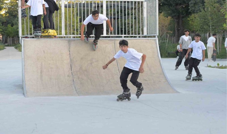 Millet Bahçesi alanında paten ve kaykay sporcuları gösterilerini sundular.