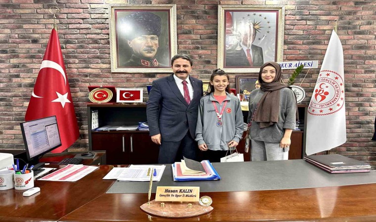 Genç sporcu Duru Sahra Olcay ve antrenörü Hatice Kübra Yangın, Eskişehir Gençlik Spor İl Müdürü Hasan Kalın’ı ziyaret etti. Kalın, genç sporcuyu tebrik ederek başarılarının devamını diledi.