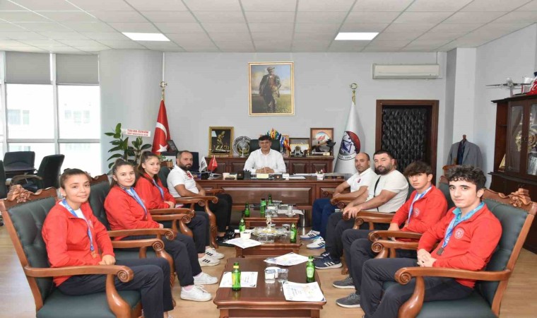 Bilecikli Avrupa şampiyonları, madalyalarıyla Söğüt Belediye Başkanı Ferhat Durgut’u makamında ziyaret etti.