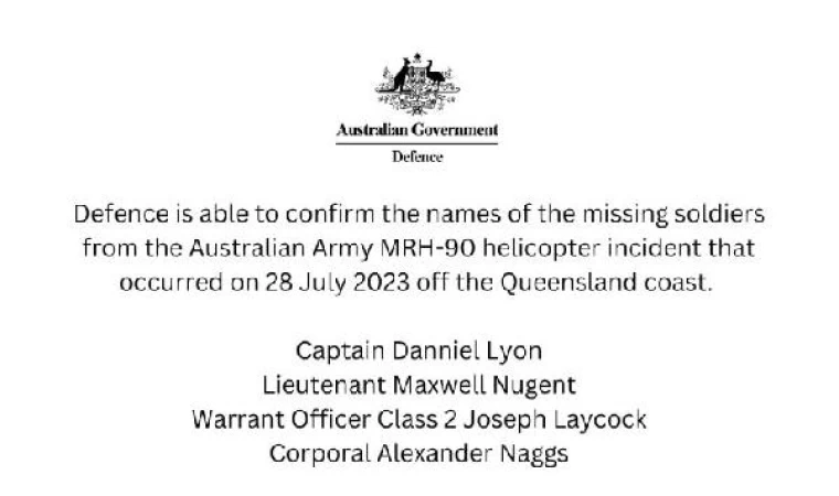 Avustralya Başbakan Yardımcısı ve Savunma Bakanı Richard Marles, 28 Temmuz’da Queensland eyaleti yakınlarında ABD-Avustralya ortak askeri tatbikatı sırasında düşen Avustralya ordusuna ait MRH-90 Taipan tipi helikopterde bulunan 4 mürettebata yönelik arama kurtarma çalışmalarına ilişkin basına açıklamalarda bulundu.