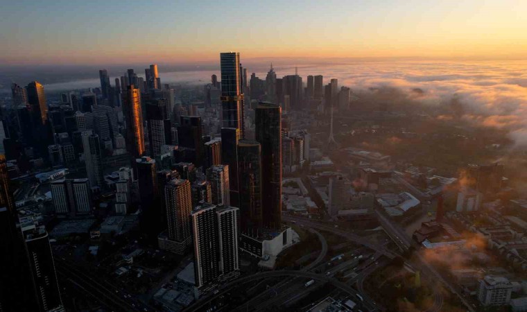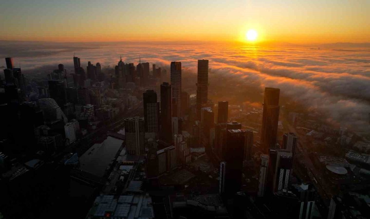 Avusturalya’nın Melbourne kentinde gökdelenlerin ve sislerin arasında havadan görüntülenen gün doğumu kartpostallık manzaralar oluşturdu.