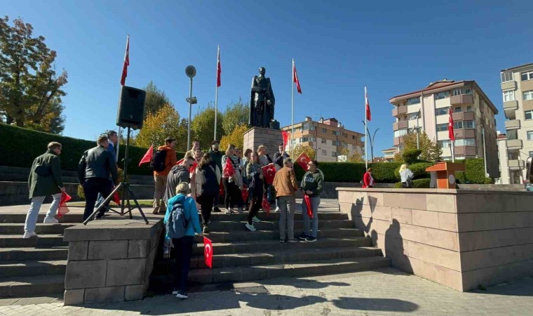 Dün Avusturyalı Manuela (27) ile hayatını birleştiren Levent Ayaz da (33), düğün için Bolu’ya gelen Avusturyalıları 29 Ekim kutlamalarına getirdi. 25 kişilik gruba, Ayaz tarafından Türk kültürü ve tarihi anlatıldı. Türk bayraklarıyla kutlamalara eşlik eden Avusturyalılar, Cumhuriyet Bayramı coşkusunu doya doya yaşadı. Kutlamaları ilgiyle izleyen Avusturyalılar, askeri tören geçişini Türk bayrakları ve alkışlarla uğurladı.