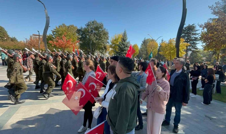 Bolu’da Cumhuriyet’in kuruluşunun 101. yıldönümünde Anıtpark’ta tören düzenlendi. Törende, Vali Abdulaziz Aydın, Garnizon Komutan Vekili Tank Komando Kıdemli Albay Cavit Nartop ve Bolu Belediye Başkanı Tanju Özcan Atatürk Anıtı’na çelenk sundu.