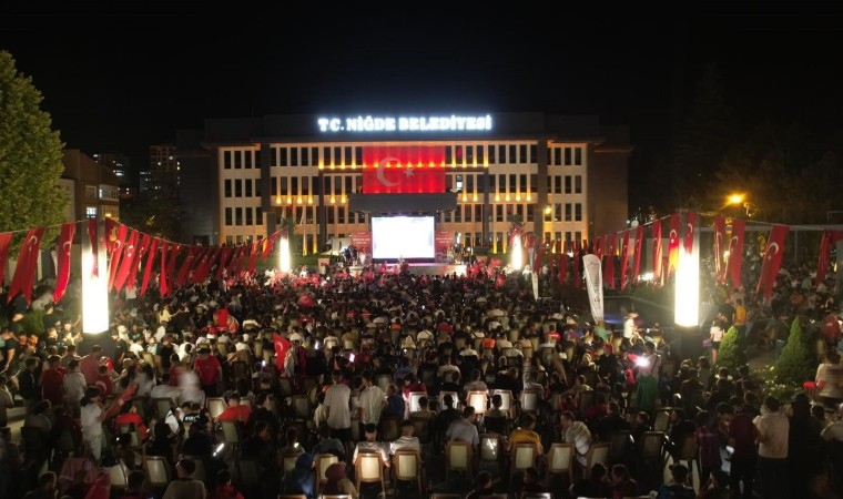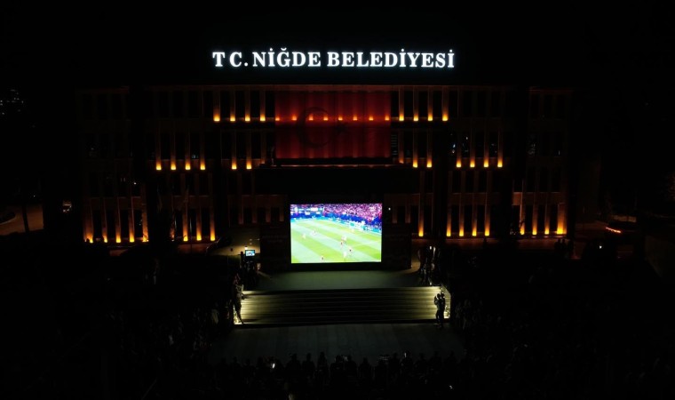 Niğde’de vatandaşlar, Türkiye-Avusturya maçını, Niğde Belediyesi’nin Ömer Halisdemir Meydanı’na kurduğu dev ekrandan izledi.
