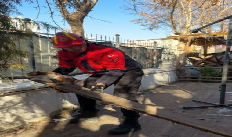 Edinilen bilgilere göre, Kaleardı Mahallesi Fevzi Çakmak Caddesi üzerindeki bir kafenin bahçesinde gezen kedi, ayağını tahtaların arasına sıkıştırdı. Kedinin yardım çığlığını duyan vatandaşlar, durumu itfaiye ekiplerine bildirdi. Kediyi sıkıştığı yerden kurtaran ekipler, daha sonra doğal yaşam alanına bıraktı.