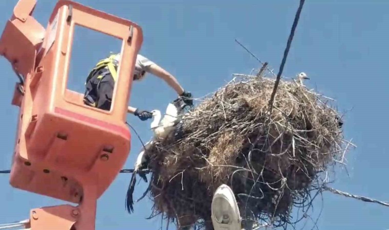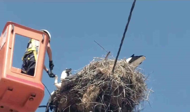 Kısa sürede leylek yuvasının olduğu bölgeye gelen TREDAŞ ekipleri, leylek yavrusunun ayağındaki ipi çözdü. Özgürlüğün kavuşan leylek bir süre uçtuktan sonra yuvasına geri döndü.