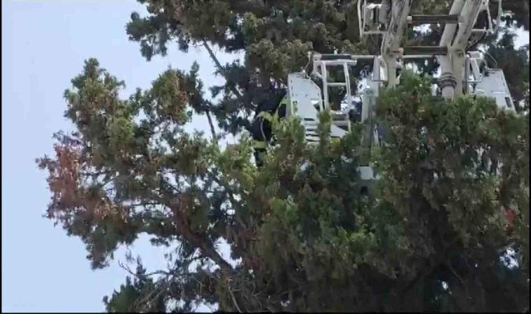 Hatay’ın İskenderun ilçesinde ayağına dolanan ip yüzünden ağaçta mahsur kalan karganın yardımına itfaiye ekipleri yetişti. İtfaiye ekiplerinin operasyonu sonrası ayağındaki ip çözülen karga özgürlüğüne kavuştu.
