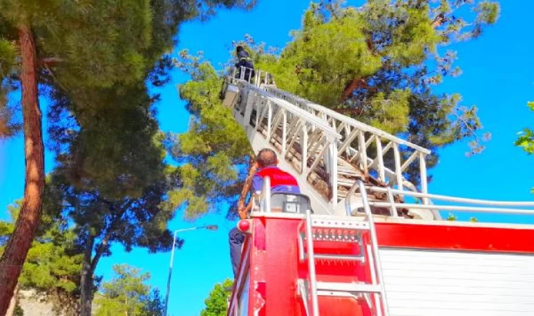 Ayağına takılan balık misinası ile dala dolanan kargayı itfaiye kurtardı