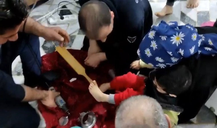 Şanlıurfa’nın Eyyübiye ilçesinde ayağına demir WC matik sıkışan 2 yaşındaki çocuk, itfaiye ekiplerinin çalışması sonucu kurtarıldı.