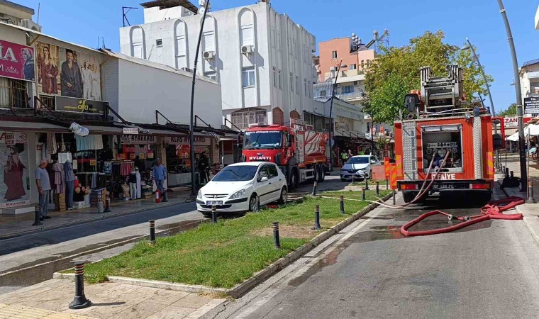 Manavgat ilçesinde ayakkabı mağazasının asma katında depo olarak kullanılan bölümde çıkan yangın güçlükle söndürüldü.