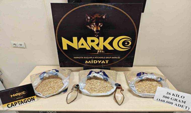 Midyat Narkotik Suçlarla Mücadele Büro Amirliği ve KOM Büro Amirliği ekiplerince Cumhuriyet Başsavcılığı koordinesinde yürütülen operasyonda, Seyitler Mahallesi Yılmaz Güney Caddesinde bir adreste arama yapıldı. Aramada, ayakkabı kolileri içerisinde bulunan kadın ayakkabıları topuk kısımlarına yapılan özel bölmelerde gizlenmiş vaziyette 26 kilo 500 gram toplam (160 bin adet) uyuşturucu ve uyarıcı captagon hap ele geçirildi.