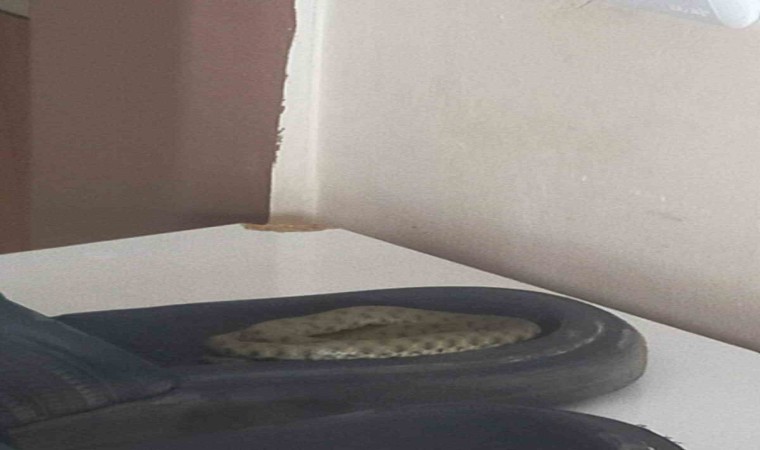 Elazığ’da bir apartman dairesinin önünde bulunan ayakkabılığın üzerindeki terlikten yılan çıktı.