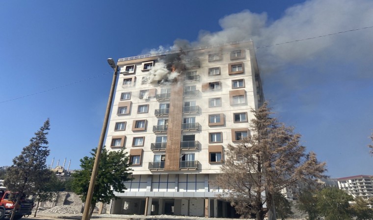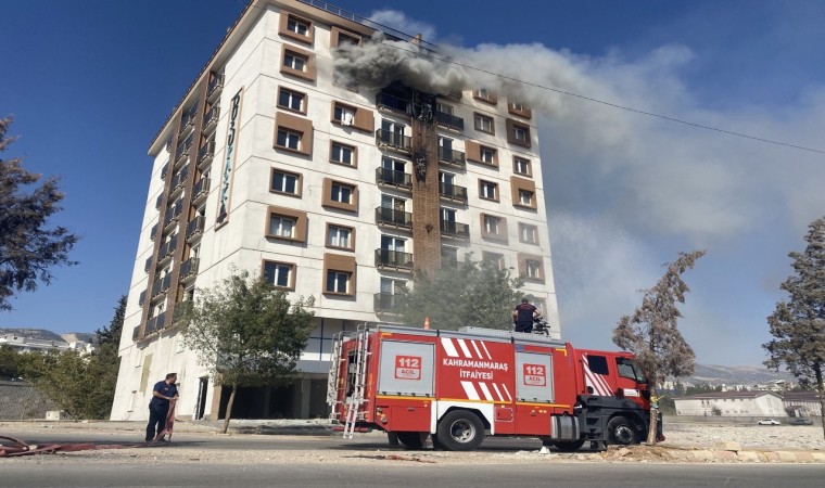 Kahramanmaraş’ta Ebrar Sitesi yanında bulunan ve ayakta kalan tek orta hasarlı binada çıkan yangın, paniğe neden oldu.