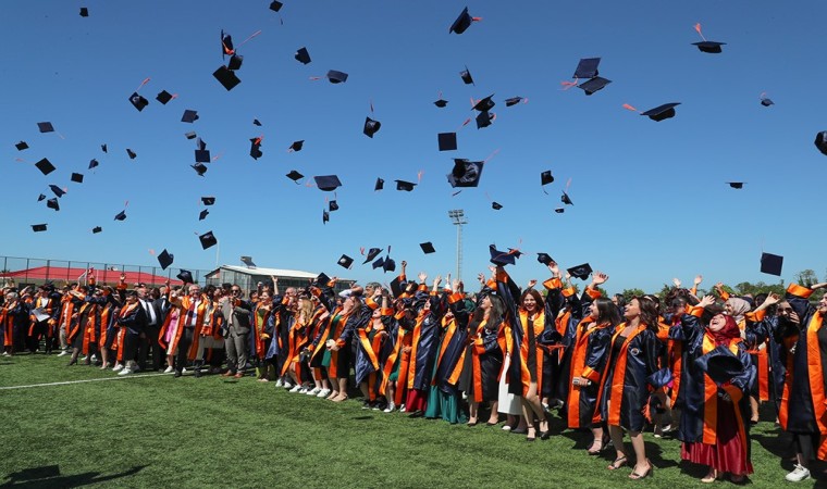 Tören sonunda öğrenciler, hep birlikte keplerini fırlatarak, mezun olmanın coşkusunu doyasıya yaşadı.