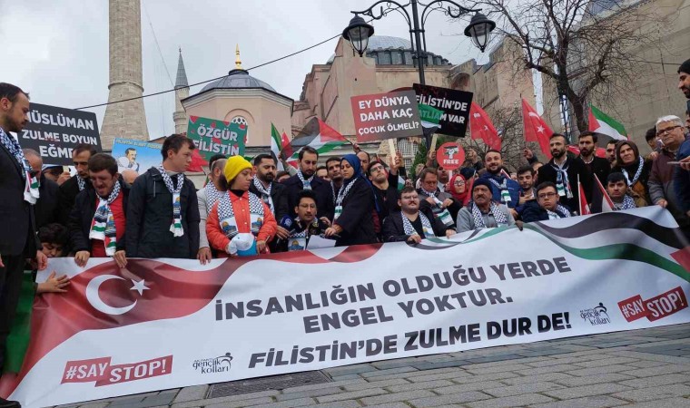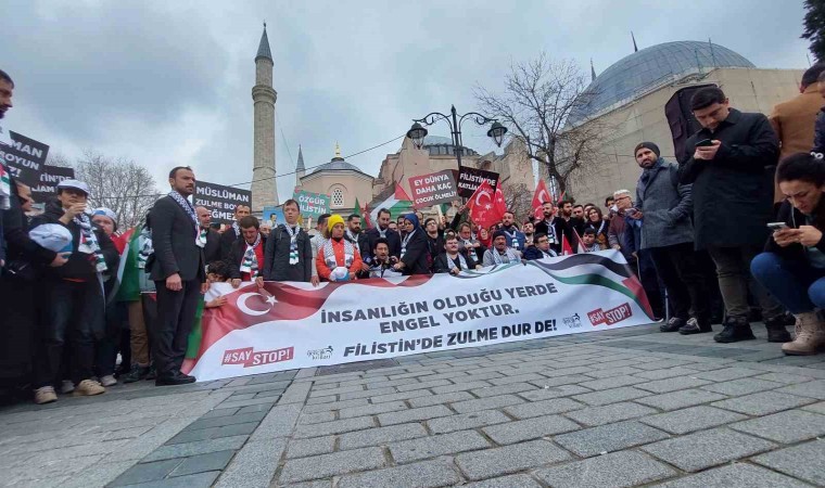 AK Parti Genel Merkez Gençlik Kolları öncülüğünde, Ayasofya-i Kebir Cami-i Şerifi önünde toplanan kalabalık, Filistin’de yaşanan katliama dur demek için ‘SayStop’ eylemi gerçekleştirdi.