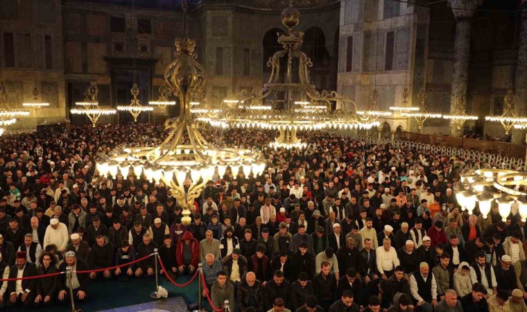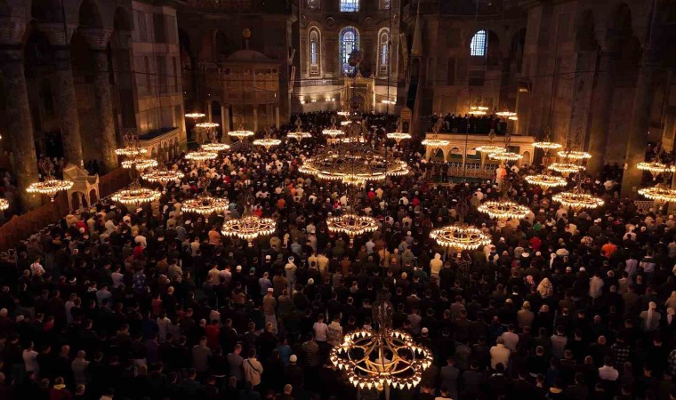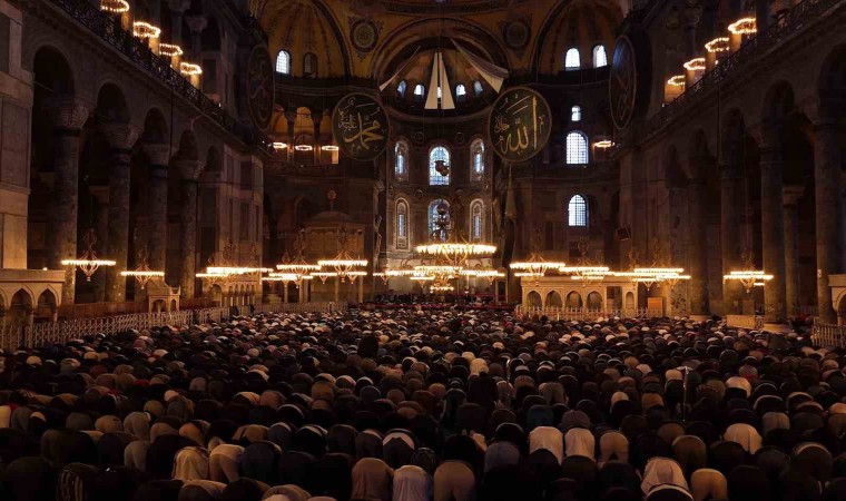 11 ayın sultanı Ramazan ayının bitmesinin ardından tüm Türkiye’de olduğu gibi İstanbul’da da bayram hareketliliği yaşanıyor. Çok sayıda vatandaş bayram namazı için de sabahın erken saatlerinden itibaren Ayasofya-i Kebir Cami-i Şerifi’ne akın etti. Namazdan önce caminin içi dolarken, içeriye giremeyen vatandaşlar avluda bayram namazını eda etti.