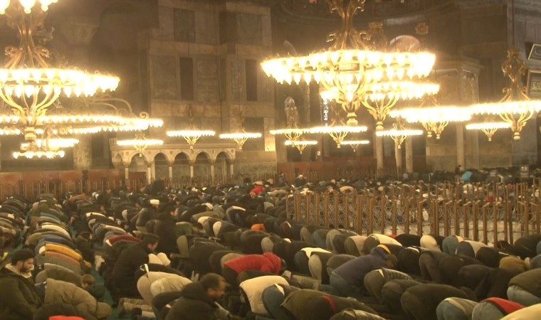 Miraç Kandili dolayısıyla Ayasofya-i Kebir Cami-i Şerifi doldu taştı. Yatsı namazı öncesinde camiye gelen vatandaşlar ve dünyanın dört bir yanından Müslümanlar, namaz kılıp, dualar etti.
