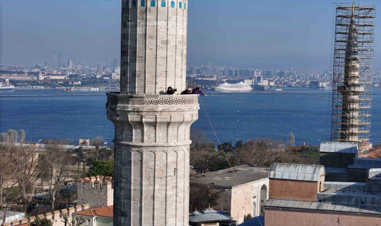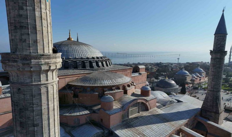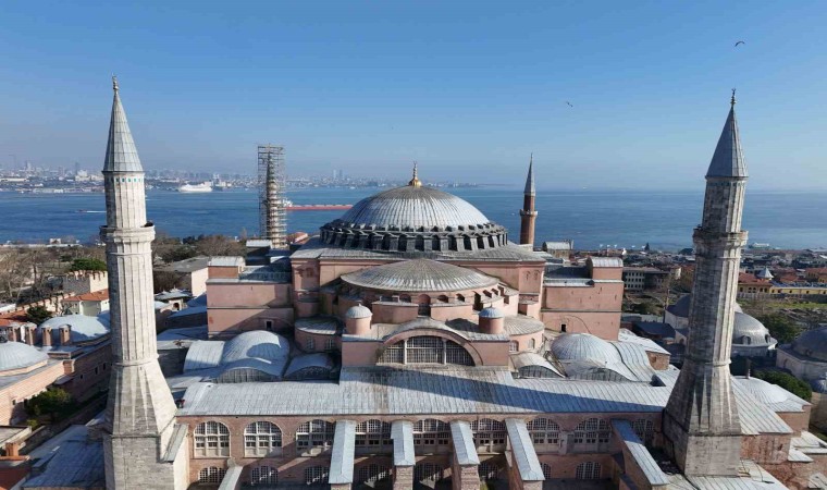 On bir ayın sultanı Ramazan’a günler kala 450 yıllık Osmanlı geleneği mahyalar, tarihi camileri süslemeye başladı. İbadete 86 yıl sonra açılan Ayasofya-i Kebir Camii Şerifi’ne, ’La İlahe İllallah’ yazılı mahya asıldı. O anlar dronla görüntülendi.
