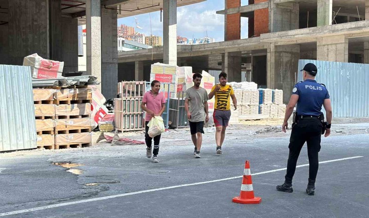 İnşaatın en üst katından malzemeleri aşağı attılar
