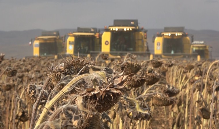 Muş Ovası’nda sıvı yağ ve kuruyemiş için 34 bin dekar alanda ekilen ayçiçeğinin hasadına başlandı.