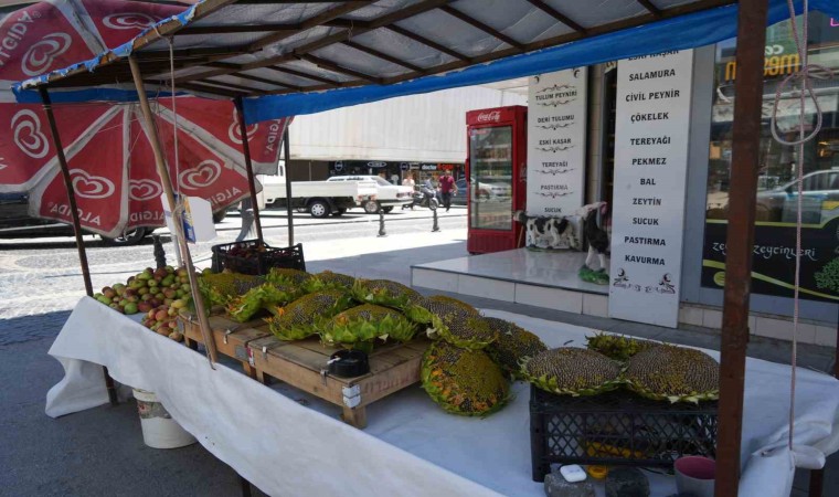 Sarının en güzel tonuyla tarlaları süsleyen ayçiçeği, hasat edilmesiyle birlikte tezgahları süsledi.