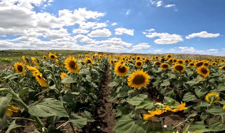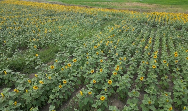 Çiçek açan ayçiçeği tarlaları görsel şölen oluştururken, bu sene ’çayır tırtılı’ görülmemesi üreticiyi sevindirdi.