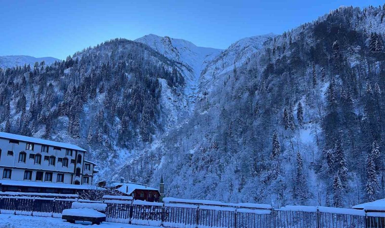 Rize’nin Çamlıhemşin İlçesindeki Ayder Yaylası beyaz örtüsüyle görenleri hayran bırakıyor.
